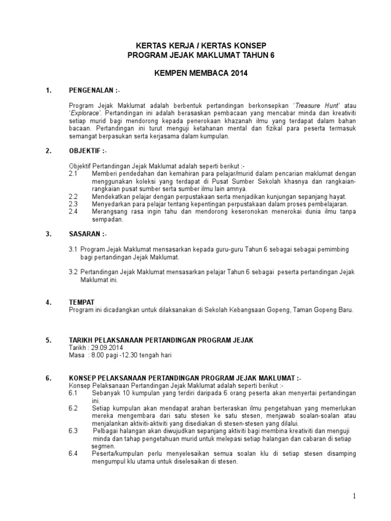 Kertas Kerja Pertandingan Treasure Hunt Pdf