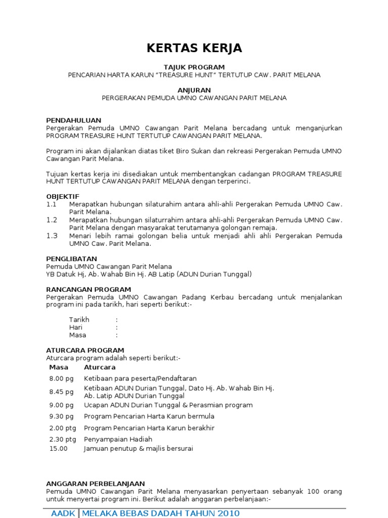 Kertas Kerja Program Treasure Hunt Pdf